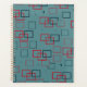 Os quadrados interligados em vermelho e preto criam um padrão geométrico contra um fundo lacrimogêneo. Retângulos dispersos menores e segmentos de linha variados acrescentam interesse visual ao design.