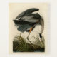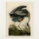 John James Audubon was one of the America's great naturalists, documenting hundreds of birds species with great precision as he made his way across America and drew in detail the wild birds of America. Audubon then published lithographs of his scientific drawings of the American birds, and this Great Blue Heron is among the best Audubon lithographs made by Audubon. The Great Blue Heron is actually a slate gray heron with blue tints and with striking markings- a black shoulder, white face, and a white crown with black stripes. It's a large heron - the largest in theU.S. The Great Blue Heron has a bill that is strong, long and yellow. The colors of the heron's thighs are a chestnut brown. The Audubon great blue heron is standing in the marsh, with marsh grass around it, and it is obviously looking for fresh fish, as its great yellow beak is turned down toward the water. This Audubon bird print of the Great Blue Heron is a beautiful bird print, and a classic image from the early 1800s.
