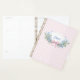 Este planejador tem um padrão de gingham branco e rosa pré-desidratado Chinoiserie e um design de etiqueta onde você pode personalizar com seu nome. O flape traseiro tem um arco rosa de gingham com o ano.