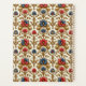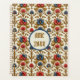 Flores vermelhas e azuis com sotaques dourados em um design barroco cria um planejador bonito e elegante. Um círculo em azul, com um centro de marfim pálido, segura suas iniciais ou monograma com o ano.