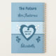 Personalize este planejador de casamento com um nome frente e verso para a Noiva ser. Todo texto pode ser alterado se você preferir Designed in blue tons, and white, with love Hearts. O futuro, Sra.