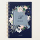 Este na moda e belo planejador apresenta um quadro de flores marinhos azuis, azuis claros e cor-de-rosa pincelada náutica com folhas bege verdes e neutras, e seu nome e monograma ou inicial no centro, sobre um fundo azul marinho escuro.