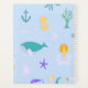 Baleias, corais, algas marinhas, veleiros, polvos, cavalos marinhos e até mesmo lulas, todos em um padrão sem fim, sem costura, flutuando sobre um fundo azul. Personalize para seu gosto (até mesmo exclua o texto se desejar).