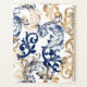Elegant vintage vector pattern featuring flowing baroque-style floral scrolls in navy blue and gold on a clean white background, creating a classic, luxurious, and timeless ornamental design.