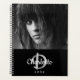 A chic black background. Personalize and add your own photo, a name, monogram letter and a year. The name is written in white with a large modern hand lettered style script. The monogram letter in gray. Perfect for school, work or organizing your personal/family life.