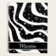 Black and white stars on cool zebra wavy lines Personalized Planner. features stars and lines design with name in a modern style typography .