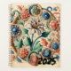 O produto retrata um belamente intrincado e decorativo design floral que combina elementos de ilustrações botânicas do estilo medieval e renascentista. A composição apresenta um conjunto de flores coloridas, incluindo uma flor branca central com pétalas detalhadas, rodeada por padrões circulares contendo flores azuis, vermelhas e cor-de-rosa. Essas flores estão entrelaçadas com videiras e folhas girando em verdes vibrantes, azuis e tons de terra, dando ao design uma aparência dinâmica e harmoniosa. A design apresenta um estilo artístico que lembra manuscritos iluminados ou filigranas de ornamentado, com uma elegante estética de safra. O fundo é suavemente texturizado, aumentando a sensação tradicional do trabalho de arte. Os detalhes, como borboletas pequenas e caramujos delicados, somam à qualidade caprichosa e encantadora da peça.
