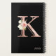 Agenda Blush Floral Dourado Rosa Monograma Anual Letra K