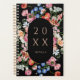 Um belo planejador com flores coloridas de cor d'água holandesas em azul, rosa, mauve e branco sobre fundo preto. Personalize com seu nome e o ano no centro de um quadro de forma de pílula.