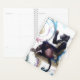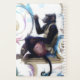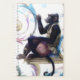 Pintura química de um macaco a soprar bolhas, rodeada por espirais pastéis de azul, rosa, amarelo e roxo.