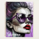 Planejador personalizado. Linda senhora com óculos de sol roxos e batom vermelho, Arte Ai com linhas degenerativas abstrato com pão bagunçado.