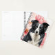 Great gift idea for dog moms and dog lovers, a desk planner for school, home activities or office, featuring a Border Collie sitting against a backdrop of big, bold pink lilies in a botanical dog lover image.