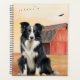 A great looking planner, choose any kind of paper style for the inside. A great gift idea for the office worker, student or dog lover. A Border Collie dog sitting in a field at the ranch with a red barn and birds in flight in the background for a great country western cowboy theme.