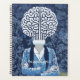 Este caderno azul-dominante contém uma ilustração de uma pessoa com uma cabeça feita inteiramente de um cérebro. Esta é uma bela design para presente ao gênio da casa ou escola! Você pode personalizar o texto padrão "o verdadeiro gênio".