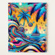 Planejador personalizado. Psíquica, rosa, azul, laranja e rosa, representa um veleiro no oceano e ondas coloridas e palmeiras.