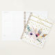A bela ilustração da aquarela Boho apresenta flores e penas em branco com fundo de setas douradas.