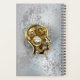 Cabeça conceitual, mecânica, humana com manômetro antigo e engrenagens metálicas contra fundo industrial das cinzas. Estilo Steampunk.