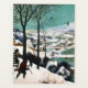 Planner com Pieter Bruegel, o pintor de óleo em madeira do Elder Os Caçadores na Neve (1565). Uma vila mergulhada na neve dá as boas vindas a um grupo de caçadores e cães. Skate de aldeões nos lagos gelados. Um presente de Natal feliz!