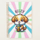 Cãozinho bonito segurando uma boba ou um chá de bolhas. notebook personalizado.
