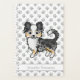 A ilustração original do desenho animado de Destei de um cão da raça casaco Chihuahua, de cor azul. Há também uma área de texto personalizável para um nome ou título. O fundo tem um padrão de cinza leve de estampas de pata de cachorro.