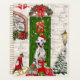 Cachorro Dalmata sentado fora de casa decorada com coroa de Natal, árvore de Natal é uma ideia perfeita de presente de Natal para amantes de cães.