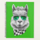Este design apresenta um retrato de Lama com óculos escuros e colar preto e branco.