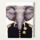 Esta design apresenta um retrato de um elefante vestido com um uniforme militar.