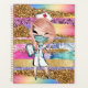 Uma vívida, contemporânea e colorida design de brilho e folha falsa em bandas horizontais preenchidas com as cores do arco-íris forma um fundo vibrante para uma linda enfermeira de desenho animado segurando uma prancheta. Ela está vestindo uma máscara de proteção e tem cabelo louro de morango. São presentes perfeitos para mães, irmãs, filhas, netas, sobrinhas e melhores amigos que trabalham num hospital ou estudam para ser enfermeiras.