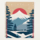 Uma design para amantes de inverno que não se importam com um caloroso; ilustração minimalista da paisagem com o nascer do sol.