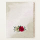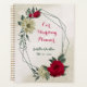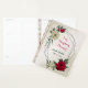 Planejador de casamento único com flores vermelhas românticas e amarelas pálidas e folhas verdes.