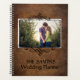 Planeje o seu casamento com esta capa rústica de couro sintético marrom com modelo de foto na frente e texto personalizado também. As volutas elegantes e pretas filigranadas acentuarão a sua foto.