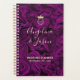 Planejador de casamento roxo marmorizado luxuoso e glamoroso com iniciais do monograma da coroa dourada da noiva e do noivo.