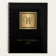 Planeador moderno minimalista negro e monograma de ouro que é perfeito para compromissos empresariais ou pessoais. Usando as ferramentas de design e a coleção de fontes do Zazzle, suas informações pessoais ou comerciais podem ser facilmente inseridas (ou seja, nome, data e nome do planejador, se uma alteração no nome do planejador for desejada).