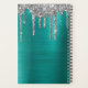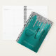 Este planejador personalizado elegante e chico apresenta o seu monograma inicial no centro com o seu nome em escrita branca sobre fundo de metal escovado teal e borda superior de brilho sujo de prata. Abaixo está escrito "PLANEJADOR 20XX". Projetado apenas para você por ExtremeTees.
