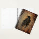 Raven no fundo do azulejo de pedra. Engrenagens de relógio por toda a fronteira.