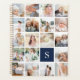Personalize este planejador gráfico com 19 fotos quadradas organizadas em um layout de colagem em grade, com seu monograma inicial de solteiro em um quadrado azul marinho no canto inferior direito. Cobrir traseiro tem tom nas faixas de tom em azul de marinho clássico correspondente.