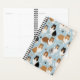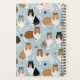 Cães de Collie Rough Cute sentam-se e ficam de pé e rollover com casacos sápidos, tricolores, unidos e brancos com ossos de cão espalhados e padrões de pegadas.