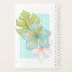 Este design de estilo de ilha moderna apresenta um buquê de flores tropicais e folhagem em uma paleta de cor pastel legal macia. O buquê de plumeria rosa pastel, hibisco azul e folha de monstera verde sobre um legal fundo azul evocou o estilo de vida precário casual de uma ilha ou localidade costeira. Personalize o texto com seu nome ou outro texto desejado.