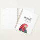 Topical parrot datebook planner, with a colorful macaw illustration and customizable script lettering. A great way to add a touch of the jungle to your school or office supplies.