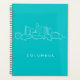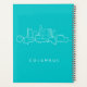 Esta design apresenta uma ilustração desenhada manualmente do horizonte da cidade de Columbus, Ohio, em um fundo azul.