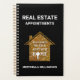 Planeador de Compromissos REAL na moda black and gold Glitter com TEXT PERSONALIZÁVEL, projetado para manter o registro de todos os compromissos que você será fazer de suas muitas referências. O TEXTO É PERSONALIZÁVEL para que você possa personalizar o texto de acordo com sua preferência. O texto diz REAL ESTATE e NOMEAÇÕES. O texto dentro da falsa casa da relva dourada diz BLESSINGS ON YOUR NEW HOME em tipografia branca. O O de HOME é substituído por uma chave. Este planejador de realtor seria um excelente adicional para o seu negócio real. Escolha entre uma ampla seleção de designs imobiliários para o seu soloprendedor ou empresa, projetados em uma variedade de produtos por Designs Berean.