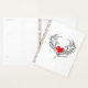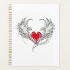 Coração vermelho pintado artificialmente com cinza de asas de anjo, decorado com contorno liso preto.