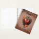 Coração Steampunk com Flores. Um coração ao estilo steampunk, predominantemente vermelho com fendas visíveis, encapsulado em um quadro de ouro de ornamentado. O quadro incorpora elementos de relógio e é adornado com flores laranja. O fundo é um cor-de-rosa suave, mutado, com padrões florais em ouro e marrom. O humor é romântico com um toque de estética mecânica e de vintagem.