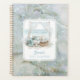 Este belo planejador temático da praia apresenta design de aquarela. O gráfico de um leito de cabana de praia com o oceano cercado por um fundo azul-glóbulo. As cores utilizadas incluem: azul de ardósia, verde de floresta, marfim e bronzeado.