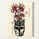 um crânio e uma tigela de coroa com lírios vermelhos dentro, com a citação, a vida é a bela mentira, a morte é a verdade feia
