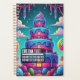Step into a world of sugary dreams with this whimsical candy land cake notebook. Featuring a vibrant, multi-tiered cake adorned with blue frosting, strawberries, and colorful candies, set against a starry night sky with fluffy clouds and lollipop accents. The playful, fantasy-inspired design makes it perfect for anyone who loves sweet treats and imaginative art. Use it to jot down your daily tasks, creative ideas, or cherished memories. This notebook is a delightful addition to any desk, bringing a touch of enchantment and joy to your everyday planning and note-taking.