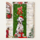 Cachorro Dalmaciano sentado do lado de fora de casa decorada com coroa de Natal, árvore de Natal é uma ideia perfeita de presente de Natal para amantes de cachorros.