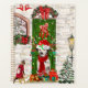Cachorro Dalmaciano sentado do lado de fora de casa decorada com coroa de Natal, árvore de Natal é uma ideia perfeita de presente de Natal para amantes de cachorros.