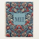 Agenda Damasco vermelho, branco e azul elegante com monog