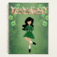 Este planejador de dança irlandês apresenta um dançarino irlandês com cabelo preto com fundo de shamrock verde. Pode ser personalizado com um ano ou qualquer texto que você queira adicionar.